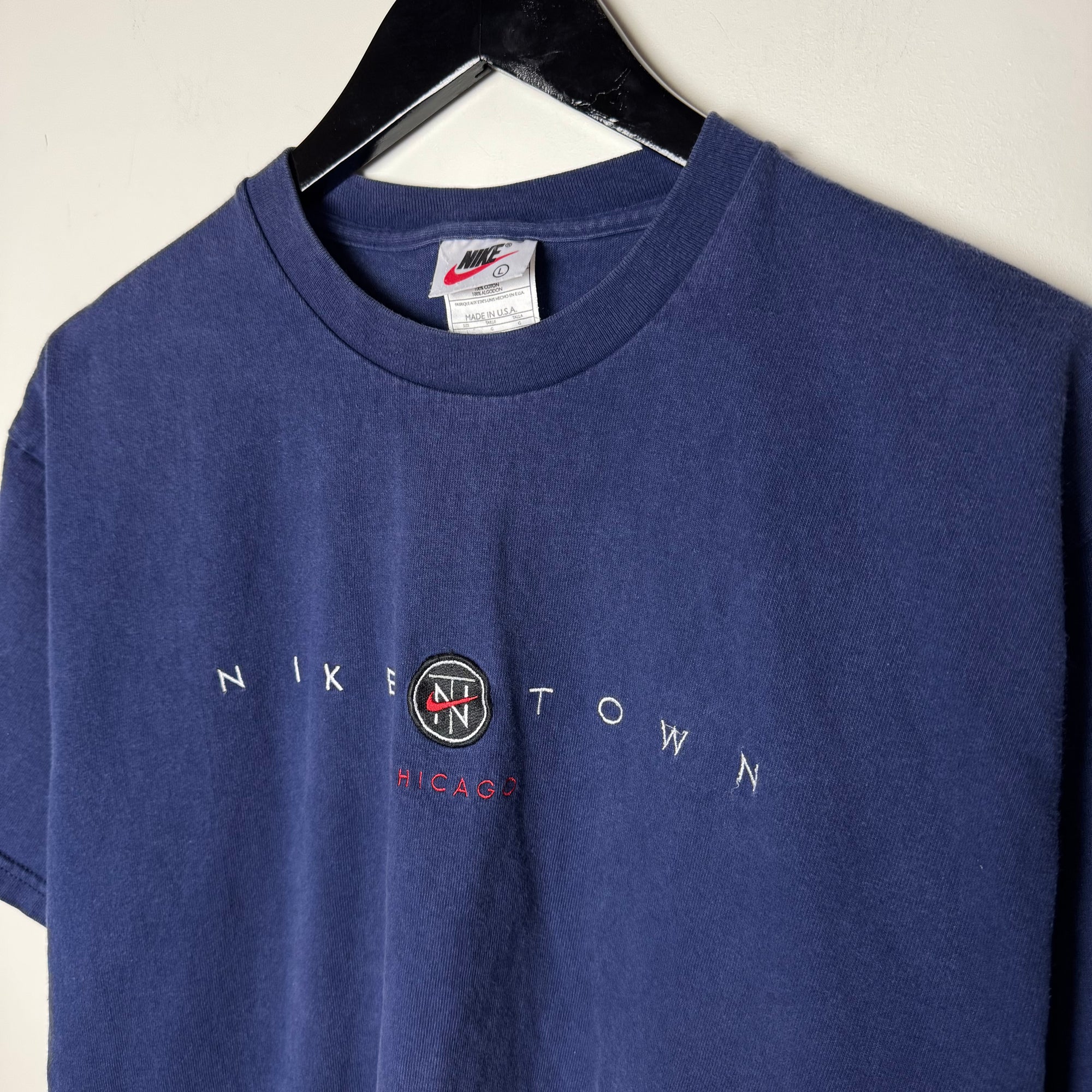 Vintage 90's NIKE TOWN Chicago Embroidered Tshirt. Good condition, light wear.