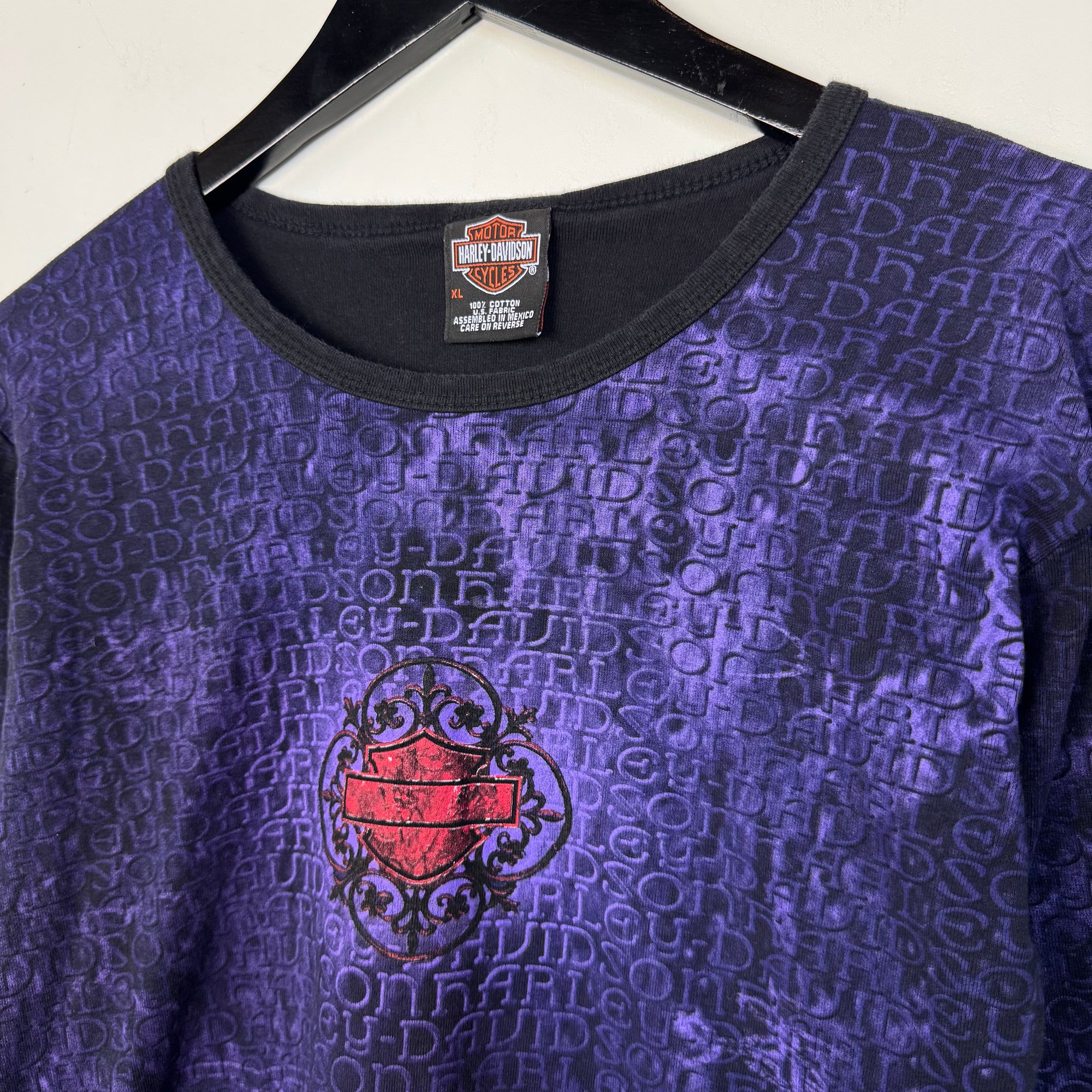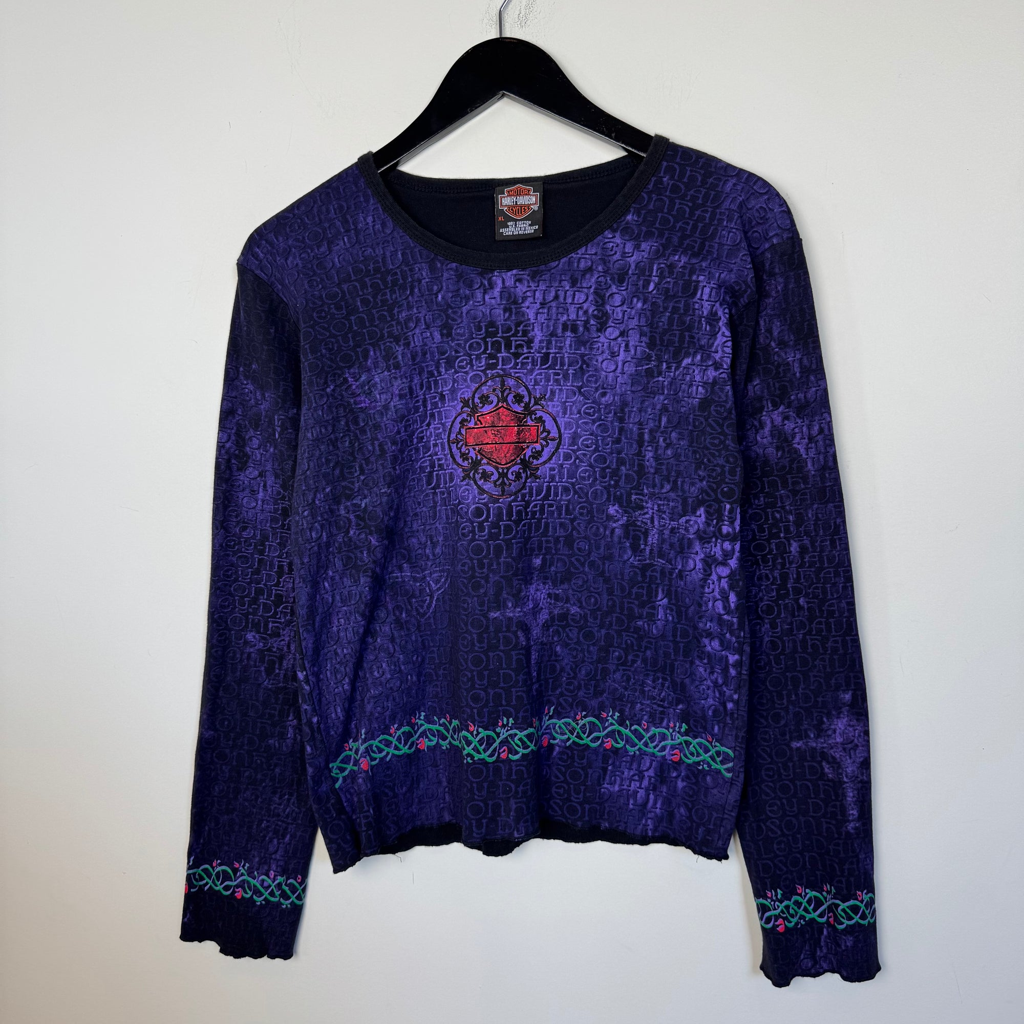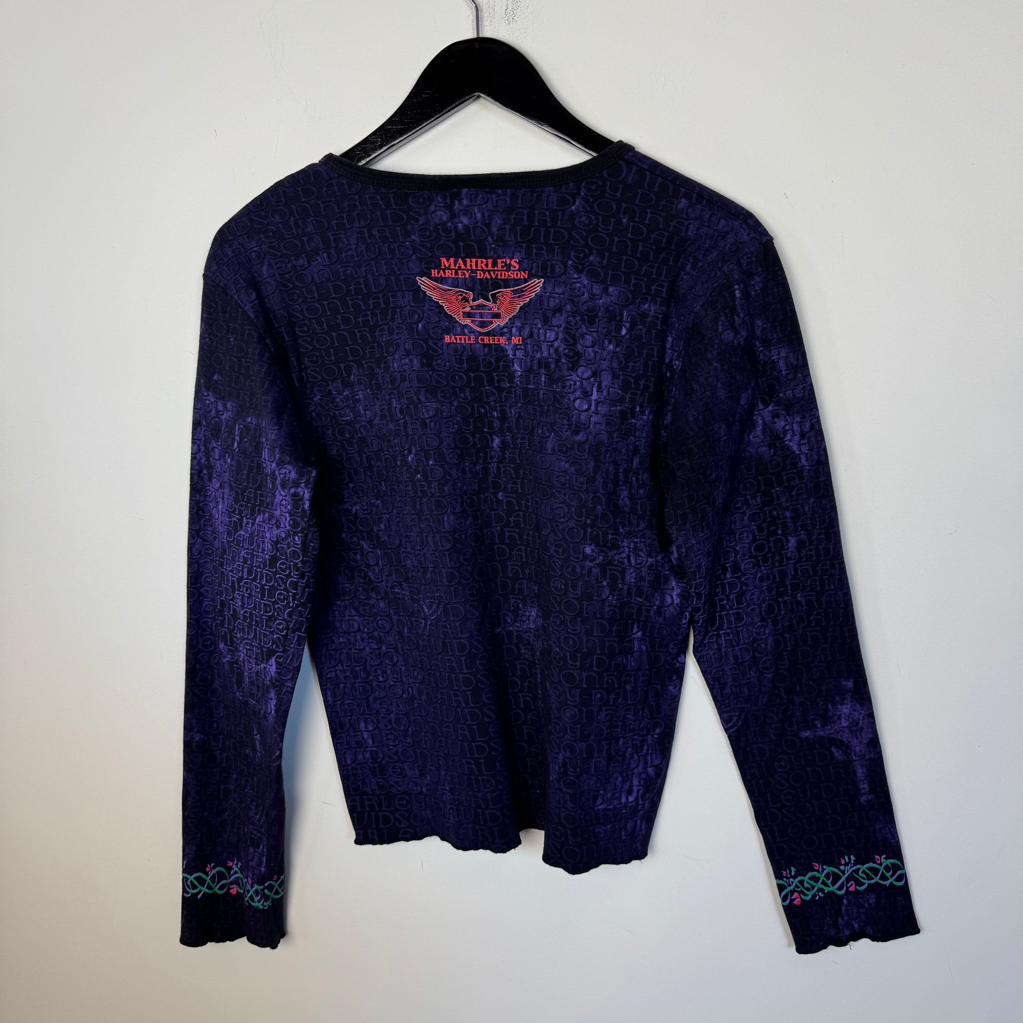 Vintage HARLEY DAVIDSON Ladies Long Sleeve All Over Print Tshirt. Good condition, light wear.
